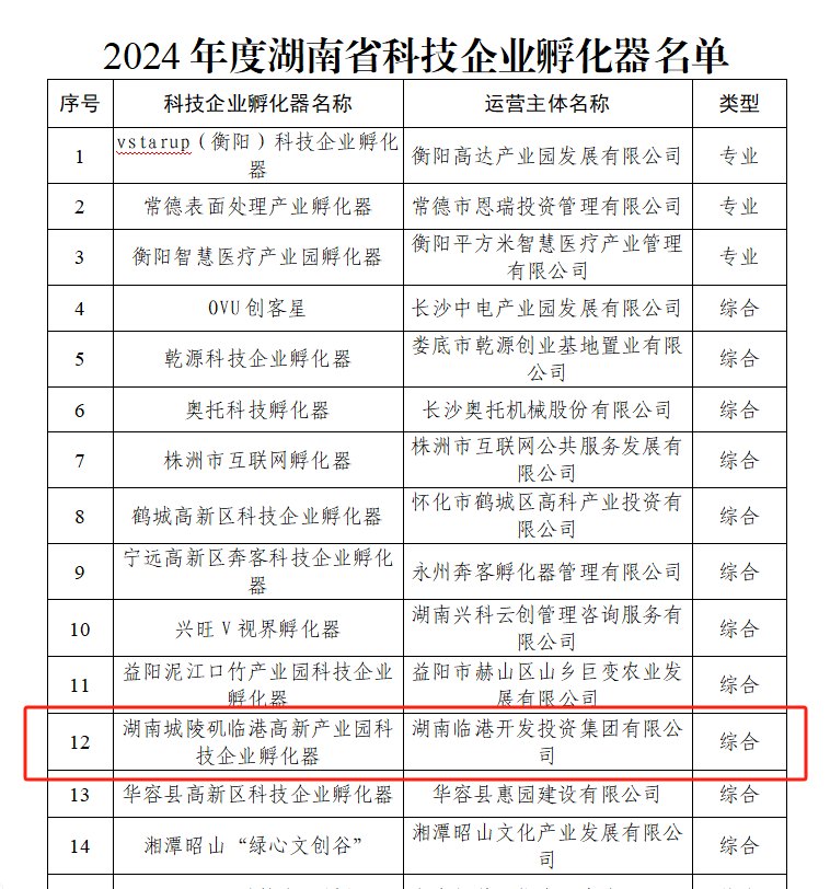 近日,湖南省科學(xué)技術(shù)廳發(fā)布了《關(guān)于公布2024年度湖南省科技企業(yè)孵化器和眾創(chuàng)空間名單的通知》,由經(jīng)投集團(tuán)旗下一級(jí)子公司港投集團(tuán)運(yùn)營(yíng)的“湖南城陵磯臨港高新產(chǎn)業(yè)園科技企業(yè)孵化器”從眾多申報(bào)者中脫穎而出,成功獲評(píng)省級(jí)科技企業(yè)孵化器(綜合類型)。