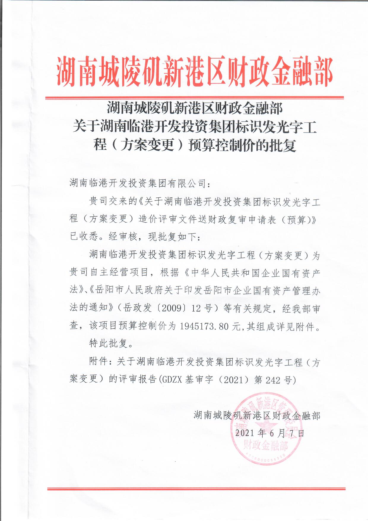 臨港高新產(chǎn)業(yè)園發(fā)光字體財評預算控制價的批復.jpg