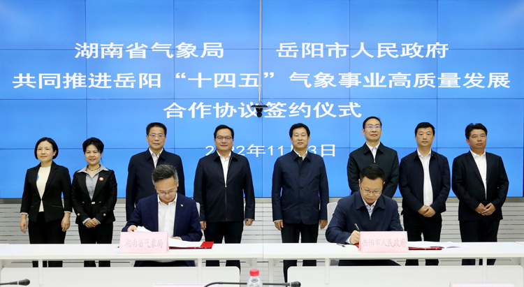 11月3日,省氣象局與岳陽市人民政府在長沙舉行共同推進岳陽“十四五”氣象事業(yè)高質(zhì)量發(fā)展合作協(xié)議簽約儀式。省氣象局局長劉家清,市委副書記、市長李摯出席并致辭。副市長陳閣輝,市政府秘書長孫志誠及相關(guān)部門負責人參加。