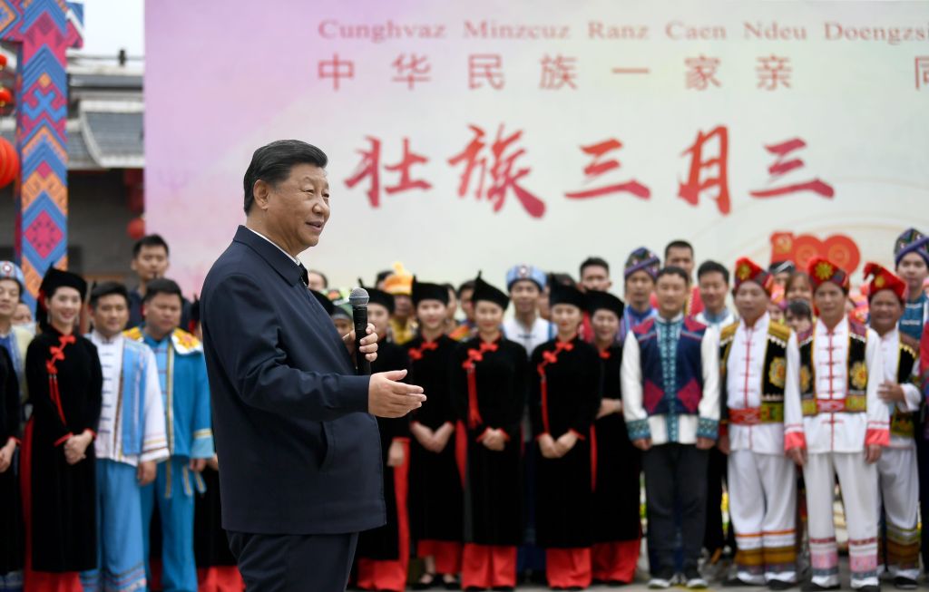 4月27日上午,正在廣西南寧考察的習(xí)近平總書(shū)記來(lái)到廣西民族博物館,了解壯族歷史、文化習(xí)俗等情況。博物館外,正在舉辦三月三“歌圩節(jié)”民族文化活動(dòng),習(xí)近平不時(shí)駐足觀看,向大家揮手致意,為大家鼓掌。習(xí)近平高興地說(shuō),廣西這些年發(fā)展進(jìn)步很大...